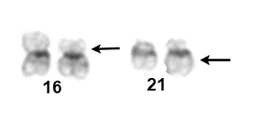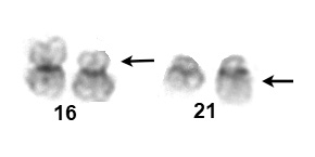 Abnormal chromosome is on the right in each pair |